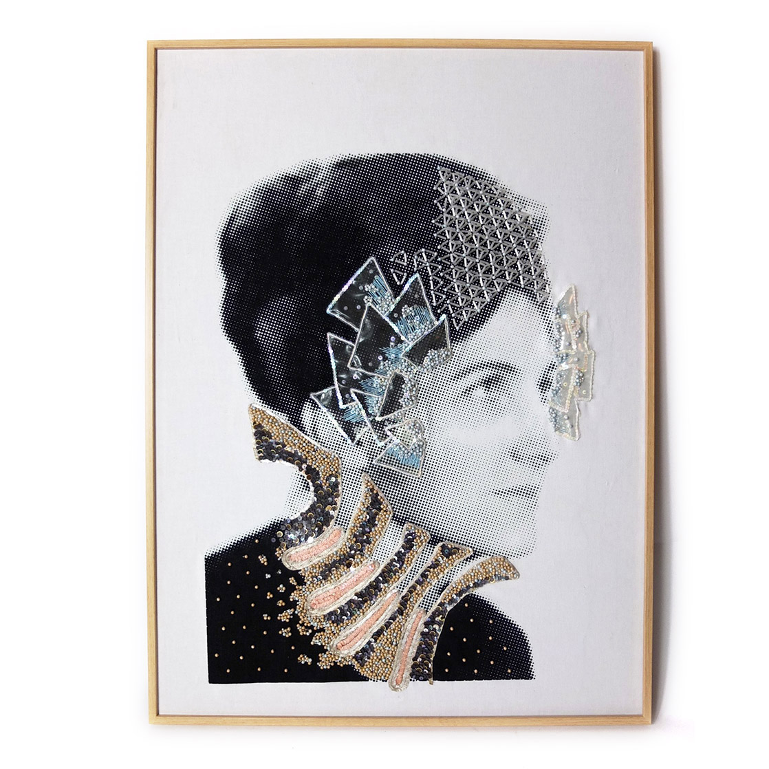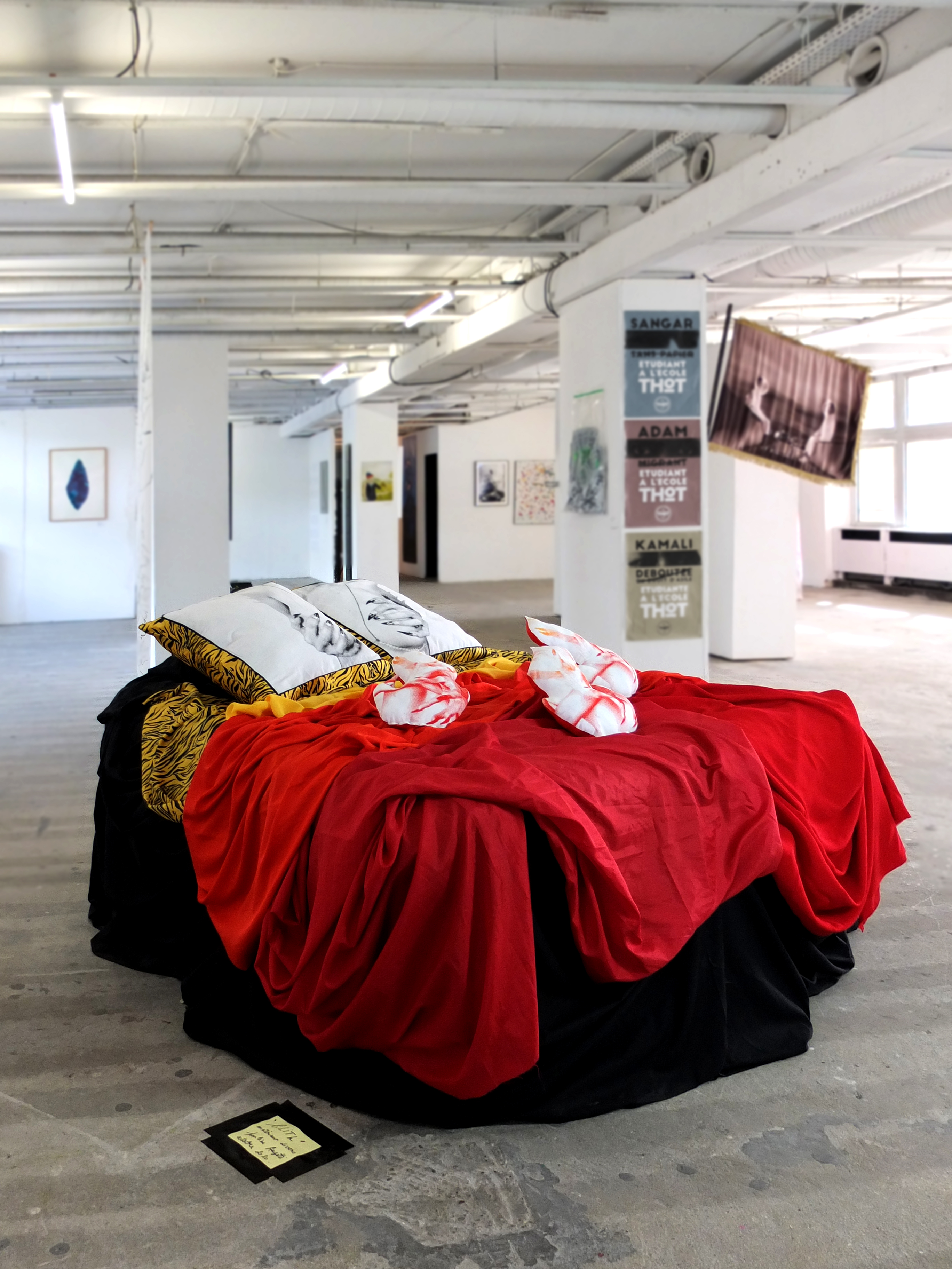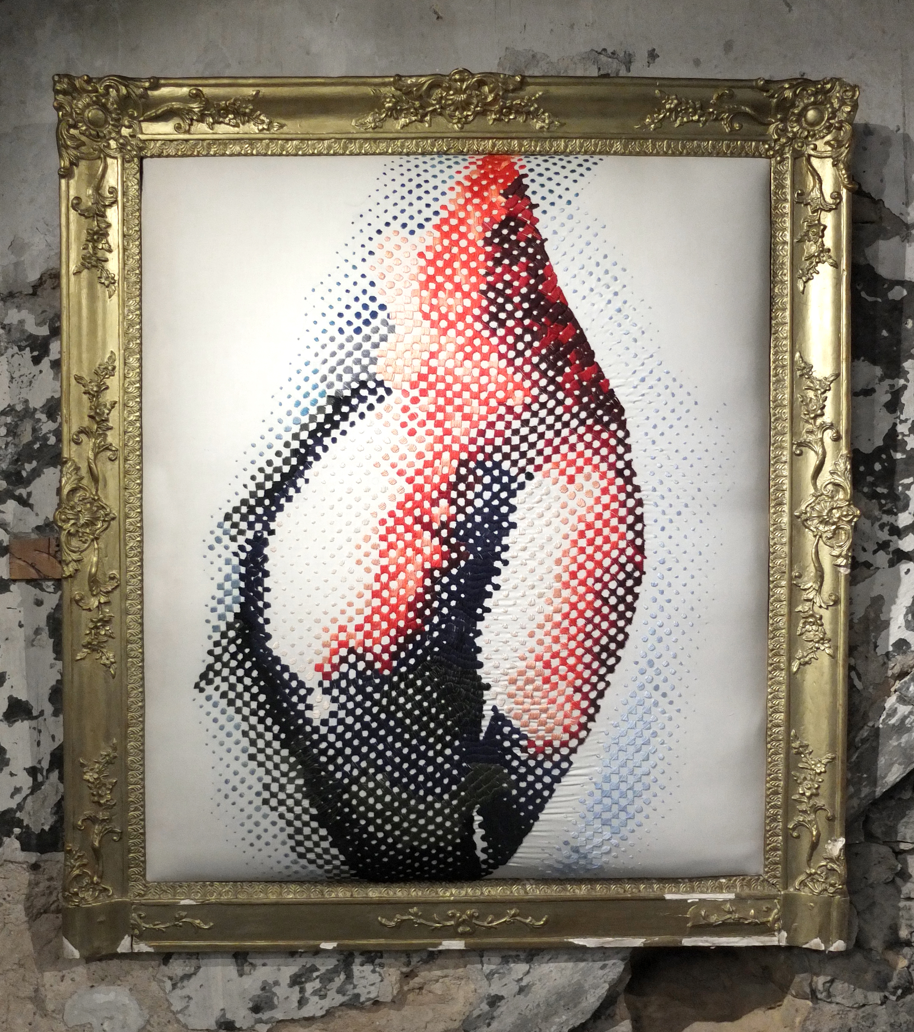 L’œuvre, sérigraphie sur tissu rehaussée de broderies, est exposée au 19m dans le cadre de l’exposition l’Ouverture, exposition inaugurale de la galerie du 19m.
