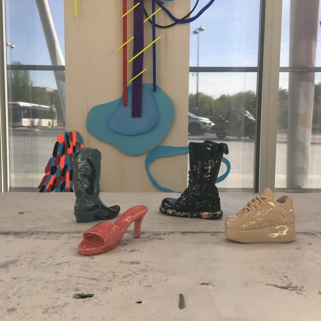 Les œuvres Concerto pour Shibari et Shoe Fetish sont exposées dans la galerie du 19m à l’occasion de la carte blanche proposé au 6b. Concerto pour Shibari est une œuvre réalisée spécialement pour l’évènement. Elle est le résultat de la collaboration de 2 résidents du 6b, Jean-Clément Grisard, artisan d’Art luthier, et Pauline Angotti, artiste textile.Shoe Fetish est une série de 4 sculptures de chaussures miniatures en céramique.