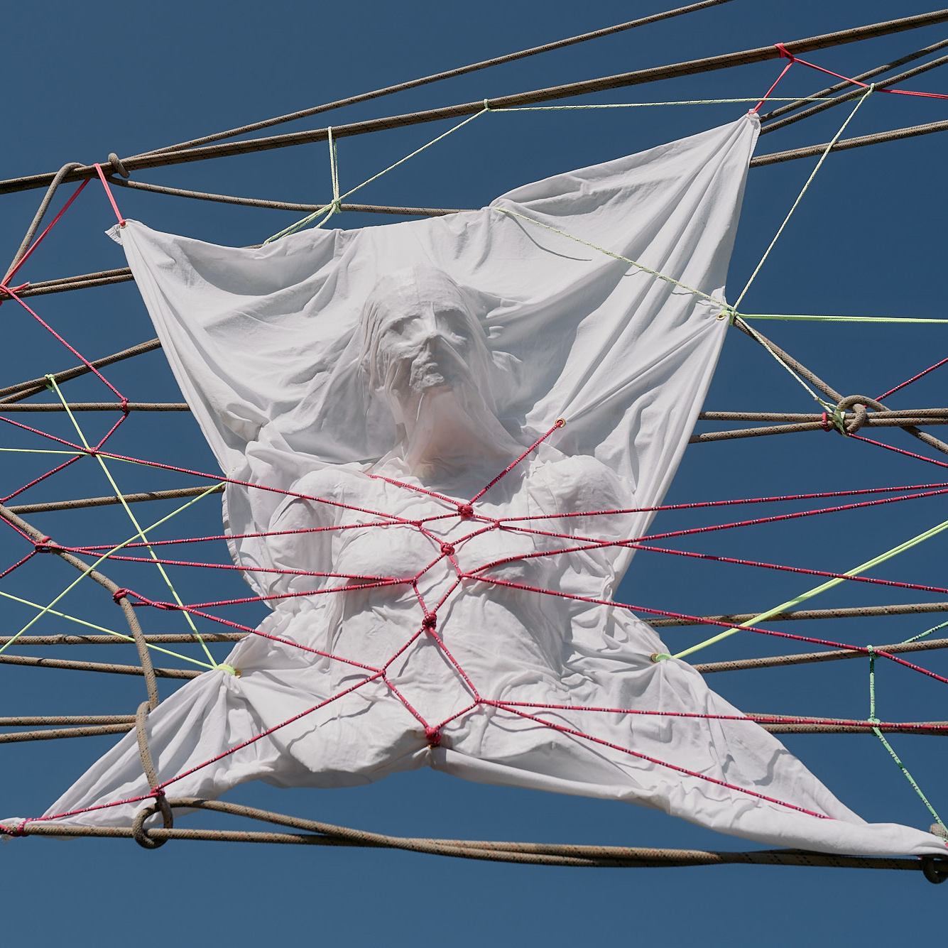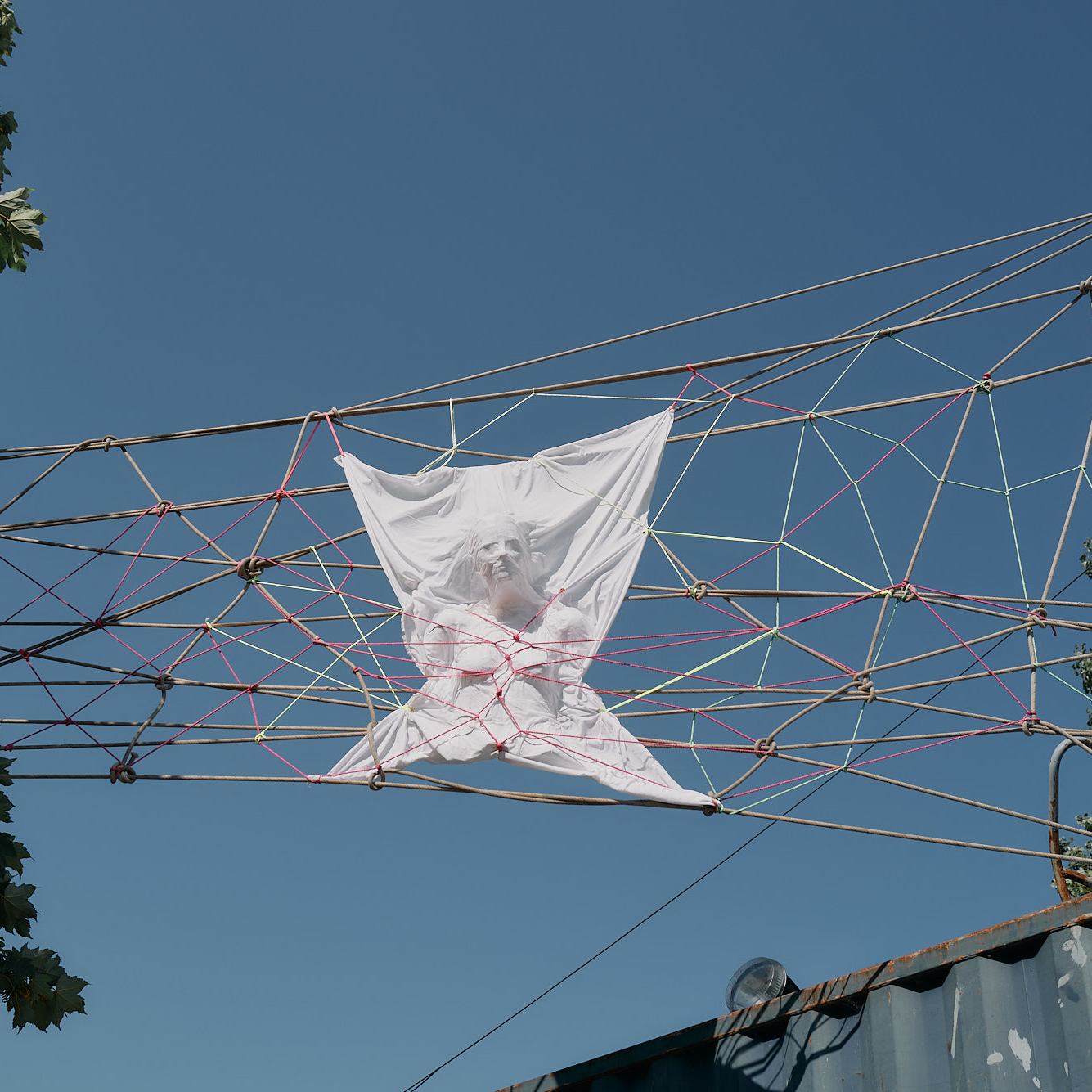Frissons acidulés #4. Installation Shibari in situ au festival de musique Frissons acidulés #4 organisé par Arrache-toi un œil. Les 9 et 10 septembre 2023 au Kilowatt à Vitry sur Seine.